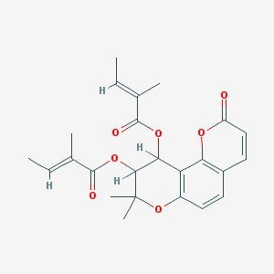 InChI=1S/C24H26O7/c1-7-13(3)22(26)29-20-18-16(11-9-15-10-12-17(25)28-19(15)18)31-24(5,6)21(20)30-23(27)14(4)8-2/h7-12,20-21H,1-6H3/b13-7+,14-8+