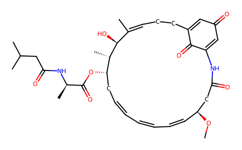 InChI=1S/C34H46N2O8/c1-21(2)17-30(38)35-24(5)34(42)44-29-16-11-9-7-8-10-15-27(43-6)20-31(39)36-28-19-26(37)18-25(33(28)41)14-12-13-22(3)32(40)23(29)4/h7-11,13,15,18-19,21,23-24,27,29,32,40H,12,14,16-17,20H2,1-6H3,(H,35,38)(H,36,39)/b8-7+,11-9+,15-10+,22-13-