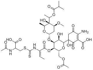 CC(NC(CSC(N/C(/C(O[C@@H]1[C@@H](COC(=O)C)OC(C2(CC(=O)C(N)=C(C(=O)O)C2=O)O)[C@H](O)[C@@H]1O[C@@H]1O[C@@H](C)[C@](O)(C(OC(C(C)C)=O)C)[C@@H](OC)C1)=O)=C/C)=S)C(=O)O)=O