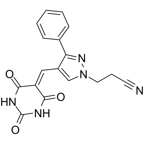 3-[3-phenyl-4-[(2,4,6-trioxo-1,3-diazinan-5-ylidene)methyl]pyrazol-1-yl]propanenitrile