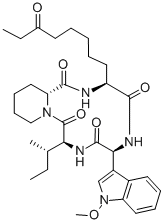 InChI=1S/C34H49N5O6/c1-5-22(3)30-34(44)38-19-13-12-18-29(38)33(43)35-26(16-9-7-8-15-25(40)6-2)31(41)36-27(32(42)37-30)21-24-20-23-14-10-11-17-28(23)39(24)45-4/h10-11,14,17,20,22,26-27,29-30H,5-9,12-13,15-16,18-19,21H2,1-4H3,(H,35,43)(H,36,41)(H,37,42)/t22-,26+,27+,29-,30+/m1/s1