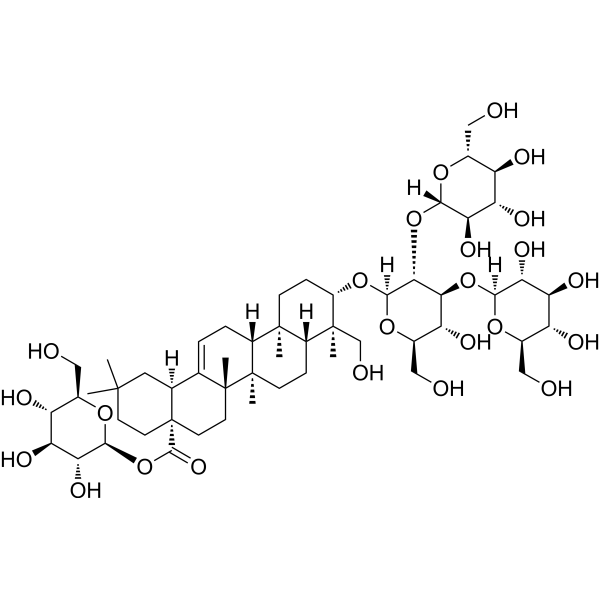 InChI=1S/C54H88O24/c1-49(2)13-15-54(48(70)78-46-41(69)38(66)34(62)27(20-57)73-46)16-14-52(5)23(24(54)17-49)7-8-30-50(3)11-10-31(51(4,22-59)29(50)9-12-53(30,52)6)75-47-43(77-45-40(68)37(65)33(61)26(19-56)72-45)42(35(63)28(21-58)74-47)76-44-39(67)36(64)32(60)25(18-55)71-44/h7,24-47,55-69H,8-22H2,1-6H3/t24-,25+,26+,27+,28+,29+,30+,31-,32+,33+,34+,35+,36-,37-,38-,39+,40+,41+,42-,43+,44-,45-,46-,47-,50-,51-,52+,53+,54-/m0/s1