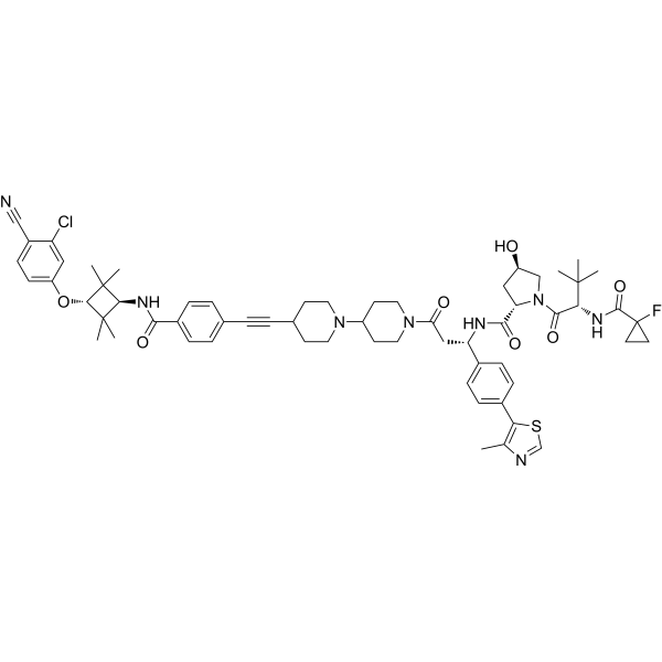 ClC1=C(C#N)C=CC(=C1)OC1C(C)(C)C(C1(C)C)NC(C1C=CC(C#CC2CCN(CC2)C2CCN(C(C[C@@H](C3C=CC(C4=C(C)N=CS4)=CC=3)NC([C@@H]3C[C@H](CN3C([C@H](C(C)(C)C)NC(C3(CC3)F)=O)=O)O)=O)=O)CC2)=CC=1)=O