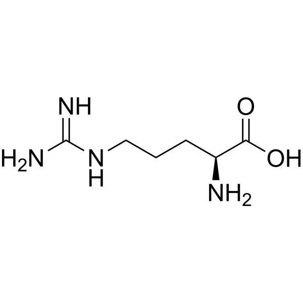 EXPTL USE: IN MICE, L-ARGININE-HCL HAD AN INHIBITORY EFFECT ON MURINE SARCOMA VIRUS-MOLONEY & C3H BREAST ADENOCARCINOMA TUMOR SYSTEMS. EXPTL USE: EXPTL DIETS GIVEN 10 DAYS AFTER WALKER 256 CARCINOSARCOMA CELLS INOCULATED INTO RATS, RESULTED IN LOWER TUMOR WEIGHTS. EXPTL USE: L-ARGININE-HCL INCR IN VITRO MOTILITY IN SPECIMENS OF HUMAN SEMEN EXHIBITING SUBNORMAL MOTILITY. EFFECT WAS DOSE DEPENDENT. EXPTL USE: ARGININE (1% IN DIET) GIVEN TO RATS INCR THYMIC SIZE & PREVENTED THYMIC INVOLUTION WHICH OCCURS WITH INJURY. ARGININE PROMOTED WOUND HEALING IN RATS. For more Therapeutic Uses (Complete) data for (L)-ARGININE (6 total), please visit the HSDB record page. Pharmacodynamics Studies have shown that is has improved immune responses to bacteria, viruses and tumor cells; promotes wound healing and regeneration of the liver; causes the release of growth hormones; considered crucial for optimal muscle growth and tissue repair. |
