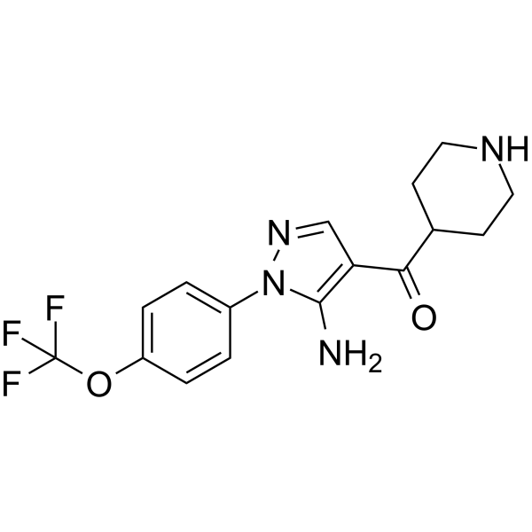 InChI=1S/C16H17F3N4O2/c17-16(18,19)25-12-3-1-11(2-4-12)23-15(20)13(9-22-23)14(24)10-5-7-21-8-6-10/h1-4,9-10,21H,5-8,20H2