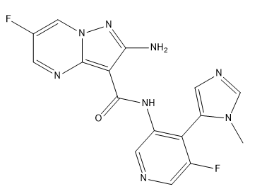 2-amino-6-fluoro-N-[5-fluoro-4-(3-methylimidazol-4-yl)pyridin-3-yl]pyrazolo[1,5-a]pyrimidine-3-carboxamide