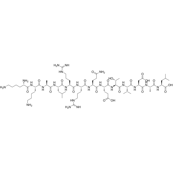 C[C@H]([C@@H](C(=O)N[C@@H](C(C)C)C(=O)N[C@@H](CC(=O)O)C(=O)N[C@@H](C)C(=O)N[C@@H](CC(C)C)C(=O)O)NC(=O)[C@H](CCC(=O)O)NC(=O)[C@H](CCC(=O)N)NC(=O)[C@H](CCCN=C(N)N)NC(=O)[C@H](CCCN=C(N)N)NC(=O)[C@H](CC(C)C)NC(=O)[C@H](C)NC(=O)[C@H](CCCCN)NC(=O)[C@H](CCCCN)N)O.C(=O)(C(F)(F)F)O