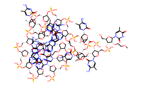 S=P(O)(OC[C@@]12[C@H](C)O[C@@H]([C@H](N3C(N=C(C(C)=C3)N)=O)O1)[C@@H]2OP(O)(OC[C@@H]1[C@H](C[C@H](N2C=NC3C(NC(N)=NC2=3)=O)O1)OP(O)(OC[C@@H]1[C@H](C[C@H](N2C=NC3C(N)=NC=NC2=3)O1)OP(O)(OC[C@@H]1[C@H](C[C@H](N2C=NC3C(N)=NC=NC2=3)O1)OP(O)(OC[C@@H]1[C@H](C[C@H](N2C(NC(C(C)=C2)=O)=O)O1)OP(O)(OC[C@@H]1[C@H](C[C@H](N2C=NC3C(NC(N)=NC2=3)=O)O1)OP(O)(OC[C@@H]1[C@H](C[C@H](N2C(NC(C(C)=C2)=O)=O)O1)OP(O)(OC[C@@]12[C@H](C)O[C@@H]([C@H](N3C(N=C(C(C)=C3)N)=O)O1)[C@@H]2OP(O)(OC[C@@]12[C@H](C)O[C@@H]([C@H](N3C(N=C(C(C)=C3)N)=O)O1)[C@@H]2OP(O)(OC[C@@H]1[C@H](C[C@H](N2C=NC3C(NC(N)=NC2=3)=O)O1)OP(O)(OC[C@@H]1[C@H](C[C@H](N2C=NC3C(N)=NC=NC2=3)O1)OP(O)(OC[C@@H]1[C@H]([C@H]([C@H](N2C(N=C(C(C)=C2)N)=O)O1)OCCOC)OP(O)(OC[C@@H]1[C@H]([C@H]([C@H](N2C=NC3C(N)=NC=NC2=3)O1)OCCOC)O)=S)=S)=S)=S)=S)=S)=S)=S)=S)=S)=S)=S)O[C@H]1[C@@H]2[C@H](N3C(N=C(C(C)=C3)N)=O)O[C@@]1(COP(O)(O[C@@H]1[C@@H](COP(O)(O[C@@H]3[C@@H](CO)O[C@H]([C@@H]3OCCOC)N3C(NC(C(C)=C3)=O)=O)=S)O[C@H]([C@@H]1OCCOC)N1C(N=C(C(C)=C1)N)=O)=S)[C@H](C)O2