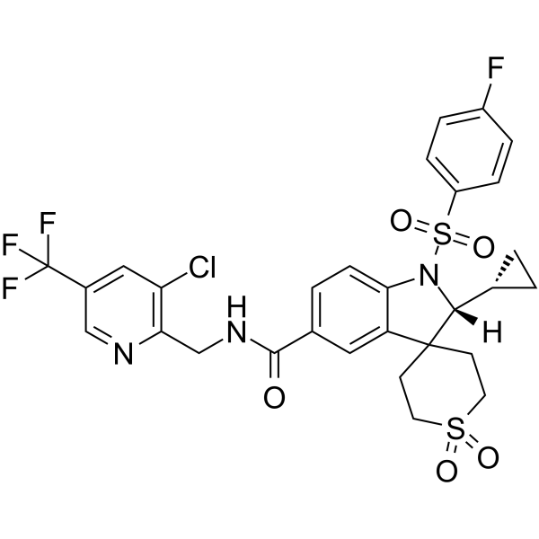 (2R)-N-[[3-chloro-5-(trifluoromethyl)pyridin-2-yl]methyl]-2-cyclopropyl-1-(4-fluorophenyl)sulfonyl-1',1'-dioxospiro[2H-indole-3,4'-thiane]-5-carboxamide