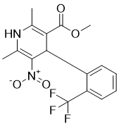 Methyl 2,6-dimethyl-5-nitro-4-[2-(trifluoromethyl)phenyl]-1,4-dihydropyridine-3-carboxylate is a pentasubstituted dihydropyridine carrying methoxycarbonyl, 2-(trifluoromethyl)phenyl and nitro substituents at positions 3, 4 and 5 respectively as well as two methyl substituents at positions 2 and 6. It is a dihydropyridine, a methyl ester, a C-nitro compound and a member of (trifluoromethyl)benzenes.