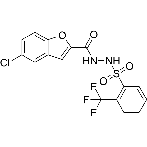 InChI=1S/C16H10ClF3N2O4S/c17-10-5-6-12-9(7-10)8-13(26-12)15(23)21-22-27(24,25)14-4-2-1-3-11(14)16(18,19)20/h1-8,22H,(H,21,23)