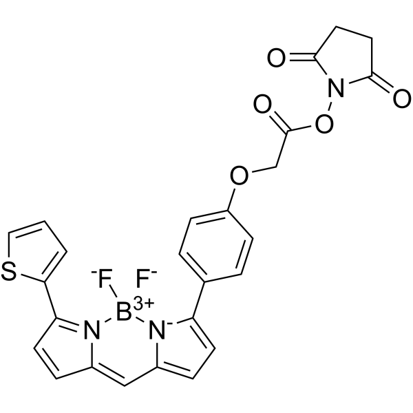 | 化学名 | (2,5-dioxopyrrolidin-1-yl) 2-[4-(2,2-difluoro-12-thiophen-2-yl-3-aza-1-azonia-2-boranuidatricyclo[7.3.0.03,7]dodeca-1(12),4,6,8,10-pentaen-4-yl)phenoxy]acetate |