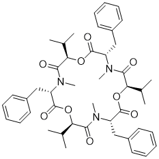 CC(C)[C@@H]1C(=O)N([C@H](C(=O)O[C@@H](C(=O)N([C@H](C(=O)O[C@@H](C(=O)N([C@H](C(=O)O1)CC2=CC=CC=C2)C)C(C)C)CC3=CC=CC=C3)C)C(C)C)CC4=CC=CC=C4)C