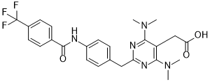 FC(C1C=CC(=CC=1)C(NC1C=CC(=CC=1)CC1=NC(=C(CC(=O)O)C(=N1)N(C)C)N(C)C)=O)(F)F
