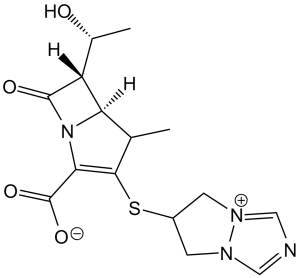 比阿培南是一种碳青霉烯类抗生素,其氮杂环丁烷环和吡咯啉环分别带有1-羟甲基和吡唑并[1,2-a][1,2,4]三唑-6-基硫代取代基。它是一种抗菌药物。比阿培南属于碳青霉烯类、吡唑并三唑类和有机硫化物类抗生素。