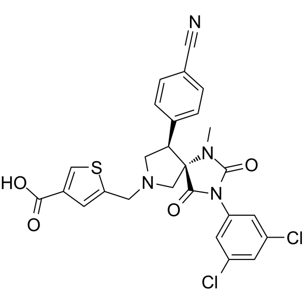 CN1C(=O)N(C(=O)[C@]12CN(C[C@H]2C3=CC=C(C=C3)C#N)CC4=CC(=CS4)C(=O)O)C5=CC(=CC(=C5)Cl)Cl