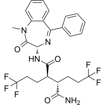 奥舒加司他 (BMS-906024) 已用于癌症、淋巴母细胞白血病、急性T细胞淋巴瘤和前体T细胞淋巴母细胞淋巴瘤的治疗试验。 奥舒加司他是一种小分子γ-分泌酶 (GS) 和泛Notch抑制剂,具有潜在的抗肿瘤活性。静脉注射后,奥舒加司他与GS结合并阻断Notch受体的激活,这可能抑制Notch通路过度活跃的肿瘤细胞的增殖。整合膜蛋白GS是一种多亚基蛋白酶复合物,它能切割单次跨膜蛋白(例如Notch受体)跨膜结构域内的特定残基,从而激活这些蛋白。Notch信号通路的过度激活(通常由激活突变引起)与某些肿瘤类型的细胞增殖增加和预后不良相关。 |