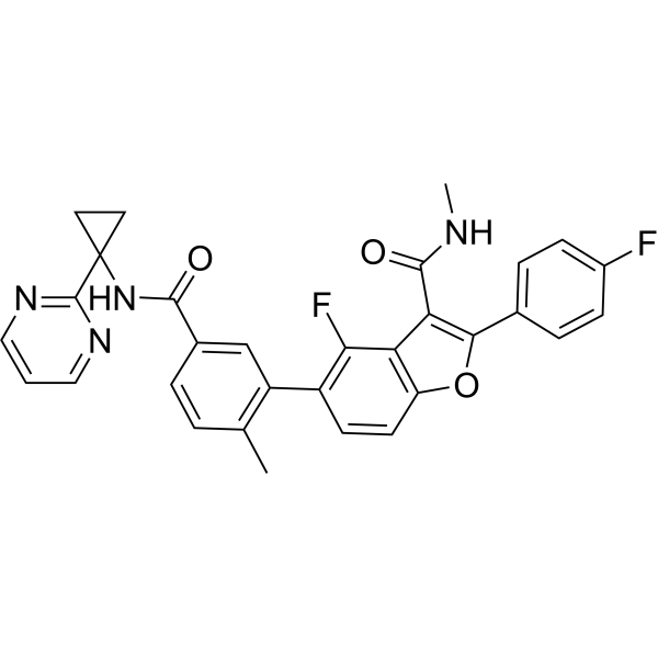 4-fluoro-2-(4-fluorophenyl)-N-methyl-5-[2-methyl-5-[(1-pyrimidin-2-ylcyclopropyl)carbamoyl]phenyl]-1-benzofuran-3-carboxamide