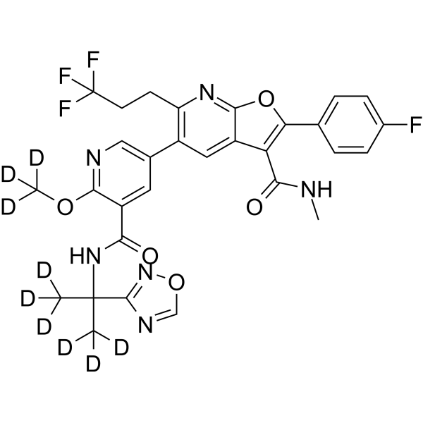 [2H]C([2H])([2H])C(C1=NOC=N1)(C([2H])([2H])[2H])NC(=O)C2=C(N=CC(=C2)C3=C(N=C4C(=C3)C(=C(O4)C5=CC=C(C=C5)F)C(=O)NC)CCC(F)(F)F)OC([2H])([2H])[2H]