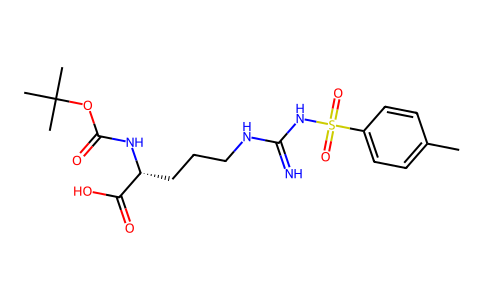 InChI=1S/C18H28N4O6S/c1-12-7-9-13(10-8-12)29(26,27)22-16(19)20-11-5-6-14(15(23)24)21-17(25)28-18(2,3)4/h7-10,14H,5-6,11H2,1-4H3,(H,21,25)(H,23,24)(H3,19,20,22)/t14-/m1/s1