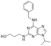 Bohemine is purine substituted on C-2, C-6 and N-9 with (3-hydroxypropyl)amino, benzylamino and isopropyl groups respectively; a synthetic, cell-permeable, cyclin-dependent kinase (CDK) inhibitor that is structurally similar to olomoucine and roscovitine. It has a role as an EC 2.7.11.22 (cyclin-dependent kinase) inhibitor.