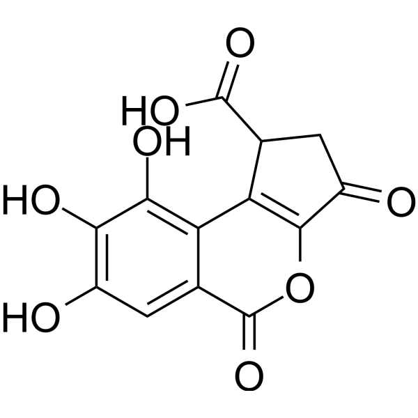 Brevifolincarboxylic acid 从蛇含委陵菜 (Potentilla kleiniana Wight et Arn) 的正丁醇提取物中分离得到,并通过超滤HPLC-MS筛选及后续活性验证被鉴定为一种α-葡萄糖苷酶抑制剂。在体外α-葡萄糖苷酶抑制实验中,brevifolincarboxylic acid 显示出IC50值为323.46 ± 8.08 μM,表明其对酶具有抑制活性。 其活性强于对照化合物阿卡波糖 (IC50 = 332.12 ± 5.52 μM)。 研究还指出,brevifolincarboxylic acid 的酯化形式 (ethyl brevifolincarboxylate) 活性降低 (IC50 = 841.75 ± 12.63 μM),提示酯化可能会减弱其α-葡萄糖苷酶抑制效力。[3] |