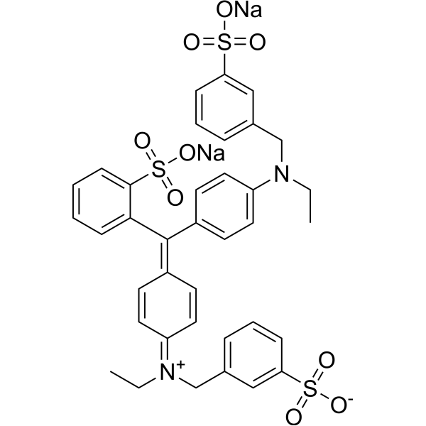 Erioglaucine A 二钠盐用作食品添加剂 [EAFUS](“EAFUS:美国食品添加剂总目录。[http://www.eafus.com/]”)。 1. 亮蓝 FCF 的背景:亮蓝 FCF(CAS 编号 3844-45-9)是一种合成的水溶性三芳甲烷染料,常用作食品添加剂(E 编号 E133),用于给饮料、糖果和烘焙食品着色。本研究创新性地将其应用于微生物荧光染色[1] 2. 染色方法的优势:与传统染色方法(例如革兰氏染色、钙荧光白染色)相比,亮蓝FCF染色具有两个主要优势:(1) 简便快捷,无需复杂的洗涤步骤,染色可在8-15分钟内完成;(2) 对微生物细胞具有高度特异性,不会对背景物质(例如培养基残留物)进行非特异性染色,从而确保清晰的观察[1] 3. 荧光染色机制:亮蓝FCF通过氢键和疏水相互作用与微生物细胞表面的碳水化合物成分(例如真菌细胞壁中的几丁质、细菌细胞壁中的肽聚糖)结合。在特定激发波长下,结合的染料发出蓝色荧光,从而实现微生物细胞的可视化[1] |