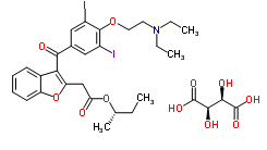 InChI=1S/C27H31I2NO5.C4H6O6/c1-5-17(4)34-24(31)16-23-25(19-10-8-9-11-22(19)35-23)26(32)18-14-20(28)27(21(29)15-18)33-13-12-30(6-2)7-3;5-1(3(7)8)2(6)4(9)10/h8-11,14-15,17H,5-7,12-13,16H2,1-4H3;1-2,5-6H,(H,7,8)(H,9,10)/t17-;1-,2-/m01/s1