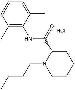 Bupivacaine hydrochloride is used for infiltration anesthesia and for peripheral, sympathetic nerve, and epidural (including caudal) block anesthesia. A 0.75% solution of the drug in 8.25% dextrose is used for spinal anesthesia. Bupivacaine is not used for obstetric paracervical block or topical anesthesia. /Use Included in US product label/ Bupivacaine Hydrochloride is indicated for the production of local or regional anesthesia or analgesia for surgery, dental and oral surgery procedures, diagnostic and therapeutic procedures, and for obstetrical procedures. Only the 0.25% and 0.5% concentrations are indicated for obstetrical anesthesia. /Use Included in US product label/ Drug Warnings The 0.75% solution of bupivacaine hydrochloride is no longer recommended for obstetric anesthesia, since use of this concentration for epidural anesthesia in obstetric patients has been associated with cardiac arrest with difficult resuscitation or death. Cardiac arrest has occurred after seizures resulting from systemic toxicity, apparently following inadvertent intravascular injection. Local anesthetics should only be employed by clinicians who are well versed in diagnosis and management of dose-related toxicity and other acute emergencies which might arise from the block to be employed, and then only after insuring the immediate availability of oxygen, other resuscitative drugs, cardiopulmonary resuscitative equipment, and the personnel resources needed for proper management of toxic reactions and related emergencies. delay in proper management of dose-related toxicity, under ventilation from any cause, and/or altered sensitivity may lead to the development of acidosis, cardiac arrest and, possibly, death. /Local anesthetics/ Pending accumulation of further data on the use of the drug in pediatric patients, bupivacaine hydrochloride solutions should not be used in children younger than 12 years of age and the solution for spinal anesthesia should not be used in children younger than 18 years of age. Some commercially available formulations of bupivacaine hydrochloride contain sodium metabisulfite, a sulfite that may cause allergic-type reactions, including anaphylaxis and life-threatening or less severe asthmatic episodes, in certain susceptible individuals. The overall prevalence of sulfite sensitivity in the general population is unknown but probably low; such sensitivity appears to occur more frequently in asthmatic than in nonasthmatic individuals. For more Drug Warnings (Complete) data for Bupivacaine (18 total), please visit the HSDB record page. Pharmacodynamics Bupivacaine is a widely used local anesthetic agent. Bupivacaine is often administered by spinal injection prior to total hip arthroplasty. It is also commonly injected into surgical wound sites to reduce pain for up to 20 hours after surgery. In comparison to other local anesthetics it has a long duration of action. It is also the most toxic to the heart when administered in large doses. This problem has led to the use of other long-acting local anaesthetics:ropivacaine and levobupivacaine. Levobupivacaine is a derivative, specifically an enantiomer, of bupivacaine. Systemic absorption of local anesthetics produces effects on the cardiovascular and central nervous systems. At blood concentrations achieved with therapeutic doses, changes in cardiac conduction, excitability, refractoriness, contractility, and peripheral vascular resistance are minimal. However, toxic blood concentrations depress cardiac conduction and excitability, which may lead to atrioventricular block, ventricular arrhythmias and to cardiac arrest, sometimes resulting in fatalities. In addition, myocardial contractility is depressed and peripheral vasodilation occurs, leading to decreased cardiac output and arterial blood pressure. Following systemic absorption, local anesthetics can produce central nervous system stimulation, depression or both. |