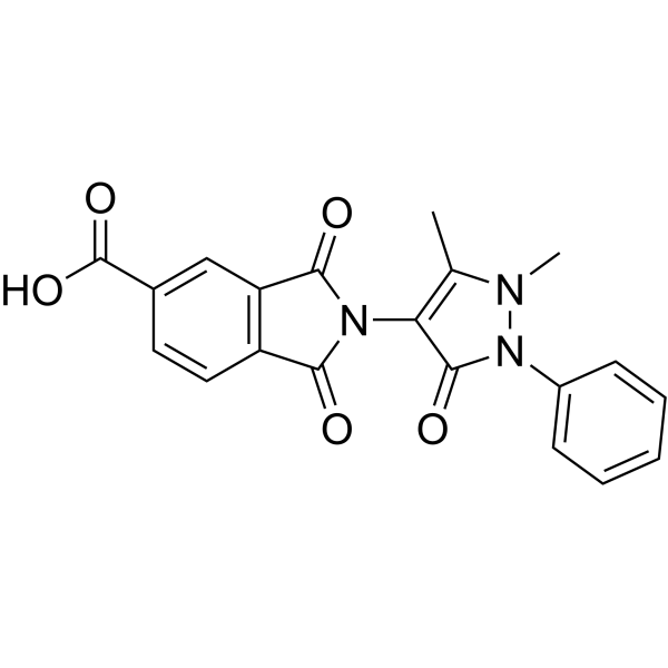 InChI=1S/C20H15N3O5/c1-11-16(19(26)23(21(11)2)13-6-4-3-5-7-13)22-17(24)14-9-8-12(20(27)28)10-15(14)18(22)25/h3-10H,1-2H3,(H,27,28)