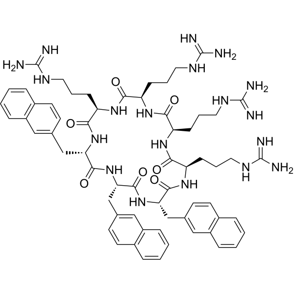 C1=CC=C2C=C(C=CC2=C1)C[C@H]3C(=O)N[C@H](C(=O)N[C@H](C(=O)N[C@@H](C(=O)N[C@@H](C(=O)N[C@@H](C(=O)N[C@@H](C(=O)N3)CCCN=C(N)N)CCCN=C(N)N)CCCN=C(N)N)CCCN=C(N)N)CC4=CC5=CC=CC=C5C=C4)CC6=CC7=CC=CC=C7C=C6