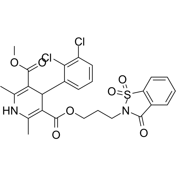 [1]. Sunkel CE, et al. Synthesis of 3-[(2,3-dihydro-1,1,3-trioxo-1,2-benzisothiazol-2-yl)alkyl] 1,4-dihydropyridine-3,5-dicarboxylate derivatives as calcium channel modulators. J Med Chem. 1992 Jun 26;35(13):2407-14.