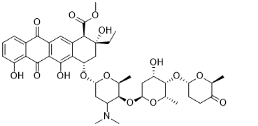 卡比星是一种从卡米霉素放线菌中分离得到的蒽环类抗肿瘤抗生素。卡比星可嵌入DNA并与拓扑异构酶II相互作用,从而抑制DNA复制和修复以及RNA和蛋白质的合成。 卡比星是一种剧毒的蒽环类抗肿瘤药物,与柔红霉素相关,也是从卡米霉素放线菌中获得的。 |