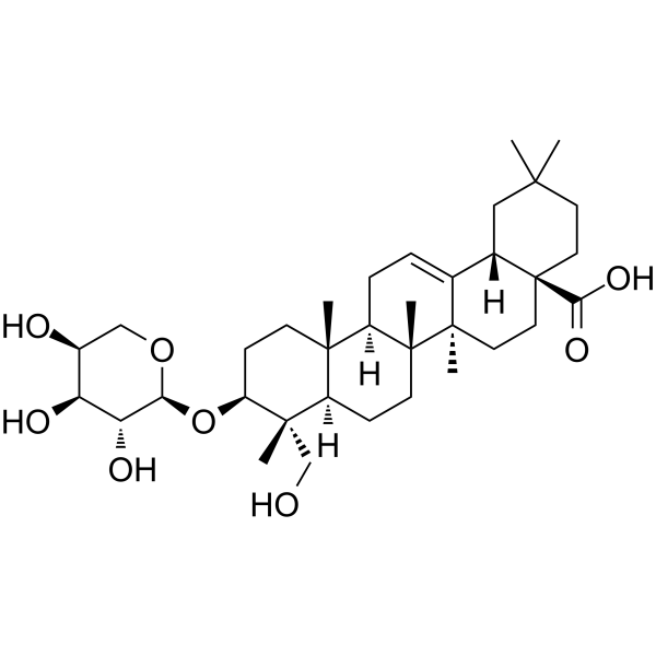 InChI=1S/C35H56O8/c1-30(2)13-15-35(29(40)41)16-14-33(5)20(21(35)17-30)7-8-24-31(3)11-10-25(43-28-27(39)26(38)22(37)18-42-28)32(4,19-36)23(31)9-12-34(24,33)6/h7,21-28,36-39H,8-19H2,1-6H3,(H,40,41)/t21-,22-,23+,24+,25-,26-,27+,28-,31-,32-,33+,34+,35-/m0/s1