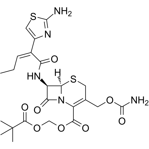 2,2-dimethylpropanoyloxymethyl (6R,7R)-7-[[(Z)-2-(2-amino-1,3-thiazol-4-yl)pent-2-enoyl]amino]-3-(carbamoyloxymethyl)-8-oxo-5-thia-1-azabicyclo[4.2.0]oct-2-ene-2-carboxylate;hydrate;hydrochloride