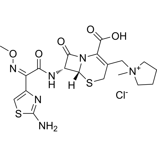 (6R,7R)-7-[[(2Z)-2-(2-amino-1,3-thiazol-4-yl)-2-methoxyiminoacetyl]amino]-3-[(1-methylpyrrolidin-1-ium-1-yl)methyl]-8-oxo-5-thia-1-azabicyclo[4.2.0]oct-2-ene-2-carboxylic acid chloride