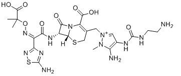 (6R,7R)-3-[[3-amino-4-(2-aminoethylcarbamoylamino)-2-methylpyrazol-1-ium-1-yl]methyl]-7-[[(2Z)-2-(5-amino-1,2,4-thiadiazol-3-yl)-2-(2-carboxypropan-2-yloxyimino)acetyl]amino]-8-oxo-5-thia-1-azabicyclo[4.2.0]oct-2-ene-2-carboxylate