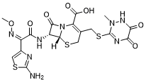 CN1C(=NC(=O)C(=O)N1)SCC2=C(N3[C@@H]([C@@H](C3=O)NC(=O)/C(=N\OC)/C4=CSC(=N4)N)SC2)C(=O)O