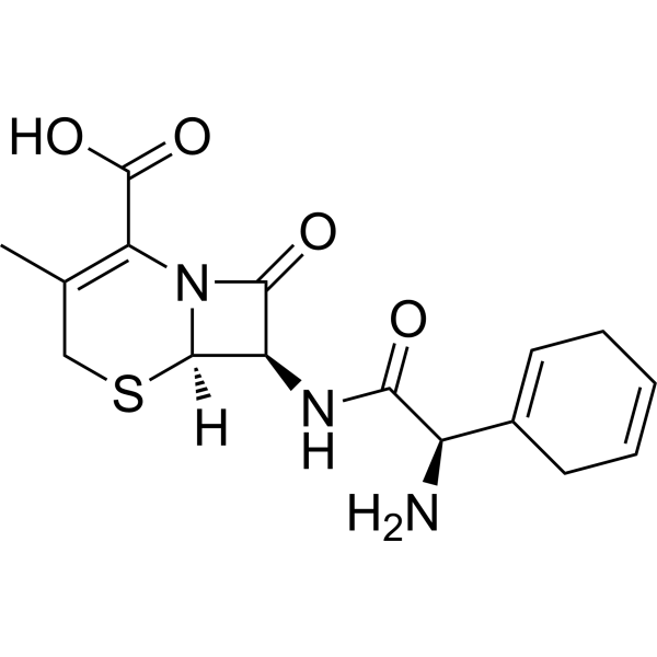 一种半合成头孢菌素类抗生素。 无水头孢拉定是一种头孢菌素类抗菌药物。 头孢拉定是一种β-内酰胺类第一代头孢菌素类抗生素,具有杀菌活性。头孢拉定与位于细菌细胞壁内膜上的青霉素结合蛋白(PBP)结合并使其失活。PBP参与细菌细胞壁组装的最后阶段,以及细胞分裂过程中细胞壁的重塑。青霉素结合蛋白 (PBP) 的失活会干扰肽聚糖链的交联,而肽聚糖链的交联对于维持细菌细胞壁的强度和刚性至关重要。这会导致细菌细胞壁的弱化,最终导致细胞裂解。 无水头孢拉定是头孢拉定的无水形式,头孢拉定是一种半合成的、广谱的第一代头孢菌素,具有抗菌活性。头孢拉定与位于细菌细胞壁内膜上的青霉素结合蛋白 (PBP) 结合并使其失活。PBP 是参与细菌细胞壁组装最后阶段以及在细菌生长和分裂过程中重塑细胞壁的酶。PBP 的失活会干扰肽聚糖链的交联,而肽聚糖链的交联对于维持细菌细胞壁的强度和刚性至关重要。这会导致细菌细胞壁减弱并引起细胞裂解。 一种半合成头孢菌素类抗生素。 作用机制 头孢拉定是一种第一代头孢菌素类抗生素,其抗菌谱与头孢氨苄相似。头孢拉定与青霉素类抗生素一样,属于β-内酰胺类抗生素。它通过与位于细菌细胞壁内的特定青霉素结合蛋白(PBPs)结合,抑制细菌细胞壁合成的第三阶段(也是最后一个阶段)。细胞裂解随后由细菌细胞壁自溶酶(如自溶素)介导;头孢拉定可能干扰自溶素抑制剂。 头孢菌素类和头霉素类抗生素抑制细菌细胞壁合成的方式与青霉素类抗生素类似。头孢菌素类药物 第一代头孢菌素类药物……对革兰氏阳性菌具有活性,对革兰氏阴性菌的活性相对较弱。头孢菌素类药物 治疗用途 头孢菌素类药物 头孢拉定适用于治疗由敏感菌引起的细菌性尿路感染。(已包含在美国产品标签中) 头孢拉定适用于治疗由敏感菌引起的细菌性咽炎。(已包含在美国产品标签中) 头孢拉定适用于治疗由敏感菌引起的皮肤和软组织感染。 /包含于美国产品标签/ 有关头孢拉定(共18种)的更多治疗用途(完整)数据,请访问HSDB记录页面。 药物警告 有胃肠道疾病史(尤其是结肠炎)的患者应谨慎使用头孢菌素类药物。由于已有使用头孢菌素类药物引起抗生素相关性假膜性结肠炎的报道,因此在对使用头孢菌素类药物期间或之后出现腹泻的患者进行鉴别诊断时,应考虑该病的可能性。/头孢菌素类/ 长期使用头孢菌素类药物可能导致非敏感菌过度生长,尤其是肠杆菌属、假单胞菌属、肠球菌属或念珠菌属。如果发生二重感染,应采取适当的治疗措施。头孢菌素类药物 其他已报道的头孢菌素类药物不良反应包括胸痛、胸腔积液、呼吸困难或呼吸窘迫、咳嗽和鼻炎。也有报道称血清葡萄糖浓度升高或降低。头孢菌素类药物最常见的不良反应是恶心、呕吐和腹泻。这些反应通常较轻且短暂,但极少数情况下可能严重到需要停药。其他一些口服头孢菌素类药物可能引起的胃肠道不良反应包括腹痛、里急后重、上腹痛/消化不良、食欲减退/厌食、舌炎、腹胀、念珠菌病(例如鹅口疮)、味觉改变、唾液分泌减少和烧心。肌注或静脉注射头孢菌素类药物也可能出现胃肠道不良反应。 /头孢菌素/ 有关头孢拉定(共 9 条)的更多药物警告(完整)数据,请访问 HSDB 记录页面。 |