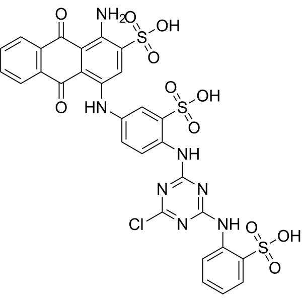InChI=1S/C29H20ClN7O11S3/c30-27-35-28(33-16-7-3-4-8-19(16)49(40,41)42)37-29(36-27)34-17-10-9-13(11-20(17)50(43,44)45)32-18-12-21(51(46,47)48)24(31)23-22(18)25(38)14-5-1-2-6-15(14)26(23)39/h1-12,32H,31H2,(H,40,41,42)(H,43,44,45)(H,46,47,48)(H2,33,34,35,36,37)