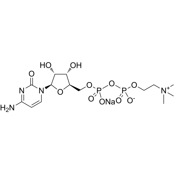 C[N+](C)(C)CCOP(=O)([O-])OP(=O)([O-])OC[C@@H]1[C@H]([C@H]([C@@H](O1)N2C=CC(=NC2=O)N)O)O.[Na+]