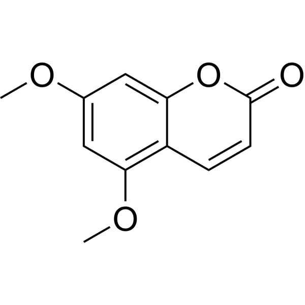 柠檬烯是一种天然存在于柑橘类植物中的香豆素衍生物[1]。当柠檬烯与丙戊酸联合使用时,观察到对黑色素瘤细胞具有协同抗增殖作用[2]。5,7-二甲氧基-1-苯并吡喃-2-酮是香豆素类化合物。据报道,5,7-二甲氧基香豆素存在于金叶黄连木、香橼以及其他有相关数据的生物体中。
