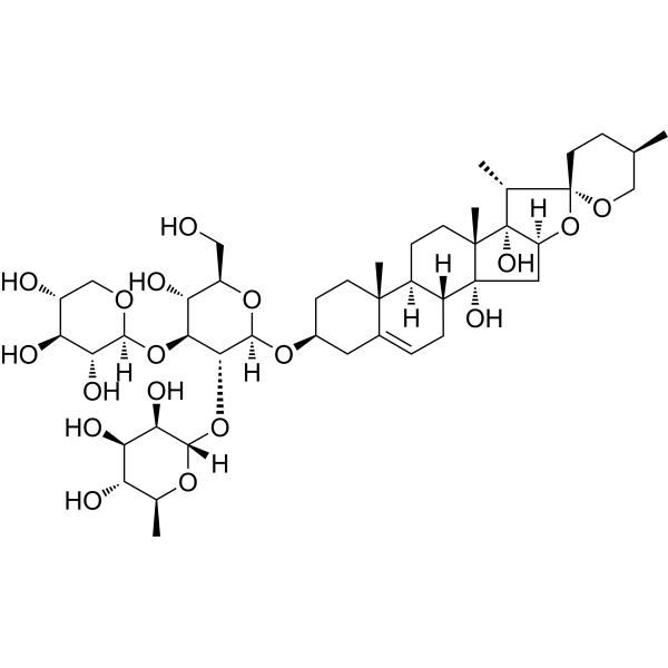 InChI=1S/C44H70O18/c1-19-8-13-43(56-17-19)21(3)44(54)28(62-43)15-42(53)25-7-6-22-14-23(9-11-40(22,4)24(25)10-12-41(42,44)5)58-39-36(61-38-34(52)32(50)29(47)20(2)57-38)35(31(49)27(16-45)59-39)60-37-33(51)30(48)26(46)18-55-37/h6,19-21,23-39,45-54H,7-18H2,1-5H3/t19-,20+,21-,23+,24+,25-,26-,27-,28+,29+,30+,31-,32-,33-,34-,35+,36-,37+,38+,39-,40+,41+,42-,43-,44-/m1/s1