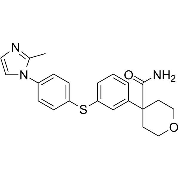 179420-17-8; CJ-13610; CJ-13,610; CJ 13610; 4-(3-((4-(2-Methyl-1H-imidazol-1-yl)phenyl)sulfanyl)phenyl)tetrahydro-2H-pyran-4-carboxamide; CHEMBL195309; 2H-Pyran-4-carboxamide, tetrahydro-4-[3-[[4-(2-methyl-1H-imidazol-1-yl)phenyl]thio]phenyl]-; 5275PJ1C59;