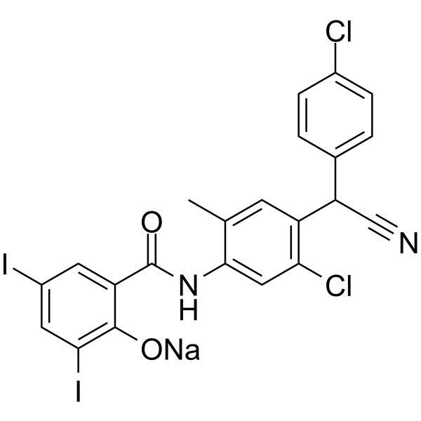 [1]. Amanda L Garner, et al. Design, synthesis, and biological activities of closantel analogues: structural promiscuity and its impact on Onchocerca volvulus. J Med Chem. 2011 Jun 9;54(11):3963-72.