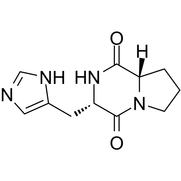环肽(L-组氨酸-L-脯氨酸)是一种同型环肽,由L-组氨酸的氨基和羧基与L-脯氨酸的羧基和氨基缩合而成。它是促甲状腺激素释放激素(TRH)的代谢产物。它是一种人血清代谢产物,具有多巴胺摄取抑制剂和抗炎作用。它是一种同型环肽、二肽、吡咯并吡嗪类化合物,属于咪唑类化合物。其功能与L-组氨酸和L-脯氨酸相关。