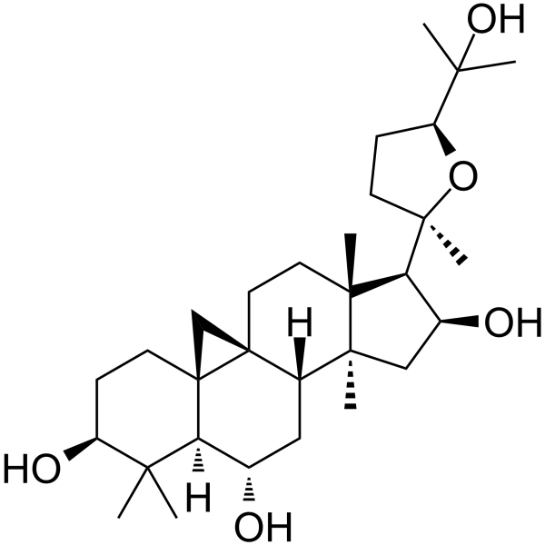 环黄芪醇是一种皂苷元,是黄芪甲苷IV的苷元衍生物,黄芪甲苷IV是从黄芪(Astragalus membranaceus)根中提取的主要皂苷。它是一种代谢产物。它是一种皂苷元,属于五环三萜类化合物、四醇类化合物和氧杂环戊烷类化合物。它来源于5α-芘的氢化物。