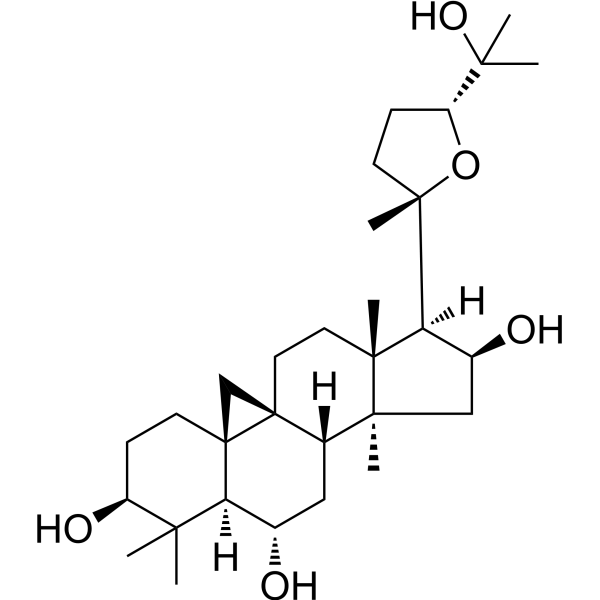 环黄芪醇是一种皂苷元,是黄芪甲苷IV的苷元衍生物,黄芪甲苷IV是从黄芪(Astragalus membranaceus)根中提取的主要皂苷。它是一种代谢产物。它是一种皂苷元,属于五环三萜类化合物、四醇类化合物和氧杂环戊烷类化合物。它来源于5α-芘的氢化物。