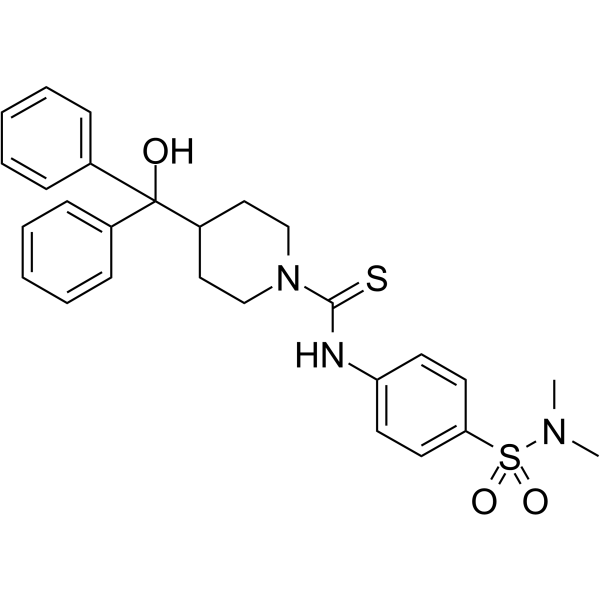 SF-11 是 NPY Y2 受体的选择性拮抗剂,可穿透大脑,IC50 为 190 nM。在对热门化学物质 SF-11 的表面积受体 (SAR) 进行彻底研究后,发现了有效且选择性的小分子 CYM 9484(化合物 16),它是 NPY Y2 受体的拮抗剂。 CYM 9484 的功效是常用化学品 SF-11 的十倍。CYM 9484 是通过几种异硫氰酸芳基酯与 α,α-二苯基哌啶基-4-甲醇反应合成的 [1]。
