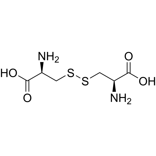 一种由半胱氨酸氧化形成的共价连接的二聚体非必需氨基酸。两个半胱氨酸分子通过二硫键连接形成胱氨酸。 L-胱氨酸是存在于大肠杆菌(K12菌株、MG1655菌株)中或由其产生的代谢产物。 据报道,L-胱氨酸存在于西班牙鼠尾草、大豆以及其他有相关数据的生物体中。 胱氨酸不属于20种必需氨基酸之一。胱氨酸是一种含硫衍生物,由半胱氨酸氨基酸硫醇侧链氧化而成。它具有抗氧化作用,能够保护组织免受辐射和污染的损害,延缓衰老过程。它还有助于蛋白质合成。胱氨酸在骨骼组织和皮肤的许多蛋白质中含量丰富,也存在于胰岛素和消化酶(如嗜铬胰蛋白酶原A、木瓜蛋白酶和胰蛋白酶原)中。(NCI04) 一种由半胱氨酸氧化形成的共价连接的二聚体非必需氨基酸。两个半胱氨酸分子通过二硫键连接形成胱氨酸。 药物适应症 据称,L-半胱氨酸具有抗炎特性,可以抵御多种毒素,并且可能有助于治疗骨关节炎和类风湿性关节炎。在L-半胱氨酸被批准用于治疗上述任何一种疾病之前,还需要进行更多研究。迄今为止的研究主要集中在动物模型上。 作用机制 某些情况,例如对乙酰氨基酚过量,会消耗肝脏中的谷胱甘肽,使组织承受氧化应激,从而导致细胞完整性丧失。L-胱氨酸是合成谷胱甘肽的主要前体。 药效学 L-胱氨酸是一种共价连接的二聚体非必需氨基酸,由半胱氨酸氧化形成。两个半胱氨酸分子通过二硫键连接形成胱氨酸。胱氨酸是一种天然存在于尿液中的化学物质,当其沉积在肾脏时可形成结石(坚硬的矿物质沉积物)。胱氨酸是两个半胱氨酸分子通过二硫键连接而成的化合物。胱氨酸是维生素B6正常利用所必需的,也有助于烧伤和伤口的愈合,并能分解支气管炎和囊性纤维化等疾病中的黏液沉积。半胱氨酸还有助于胰岛素向胰腺的供应,而胰岛素是糖类和淀粉吸收所必需的。它能提高肺、肝、肾和骨髓中谷胱甘肽的水平,这可能通过减少老年斑等方式对身体产生抗衰老作用。 |